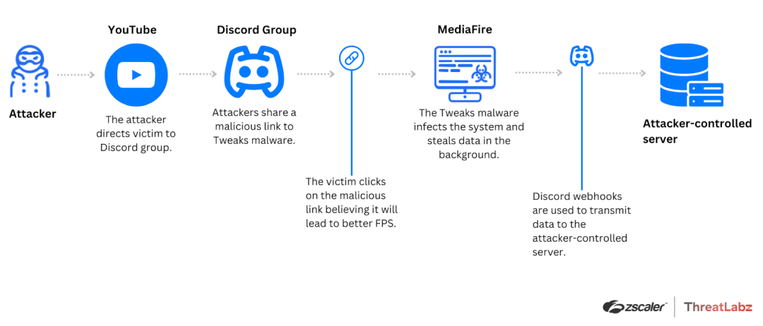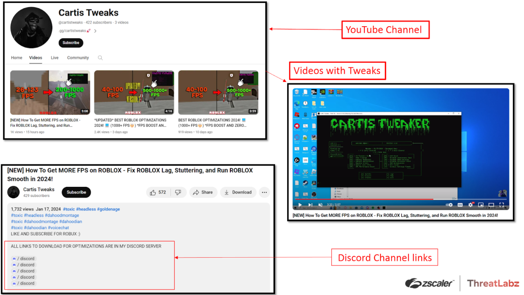 Zscaler’s ThreatLabz recently discovered a new campaign distributing an infostealer called Tweaks (aka Tweaker) that targets Roblox users. Attackers are exploiting popular platforms, like YouTube and Discord, to distribute Tweaks to Roblox users, capitalizing on the ability of legitimate platforms to evade detection by web filter block lists that typically block known malicious servers. Attackers share malicious files disguised as Frames Per Second (FPS) optimization packages with users and, in turn, users infect their own systems with Tweaks malware.