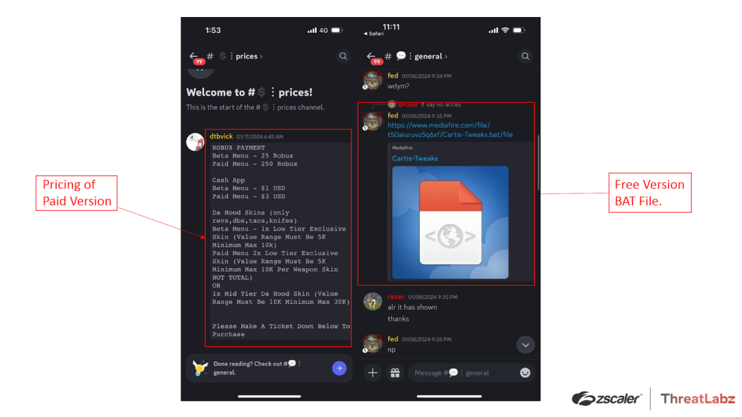 Once they enter the attacker-controlled Discord channels, users encounter both free and paid versions of FPS optimization files. Our initial analysis revealed that both versions were identical, utilizing the same BAT file. Consequently, the choice between the free and paid versions had no impact on the outcome. The only distinction was that users who opted for the paid version experienced a small financial loss and had their data stolen.