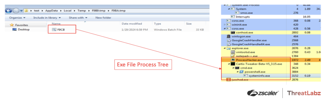 The malware author converted the BAT file into an EXE file and then inserted the EXE file into a password-protected ZIP archive. This new iteration employs the same stealing capabilities as the BAT file discussed in Case Study 1. The figure below illustrates the Tweaks attack chain for Case Study 2.