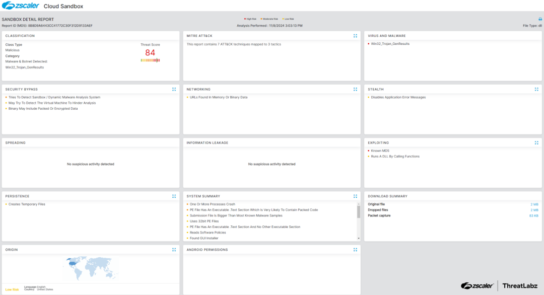 Figure 5: Zscaler Cloud Sandbox report