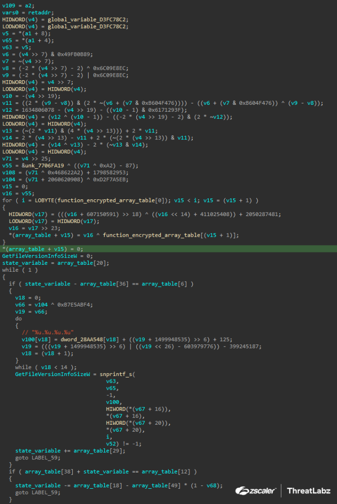 print("Detection passed")ANALYST NOTE: Emulation detection with the segment register GS has been previously documented. If the last anti-analysis technique does not pass successfully, the code enters an infinite loop state since it passes an incorrect key value for the array table of the flattened control flow (which will be discussed later).