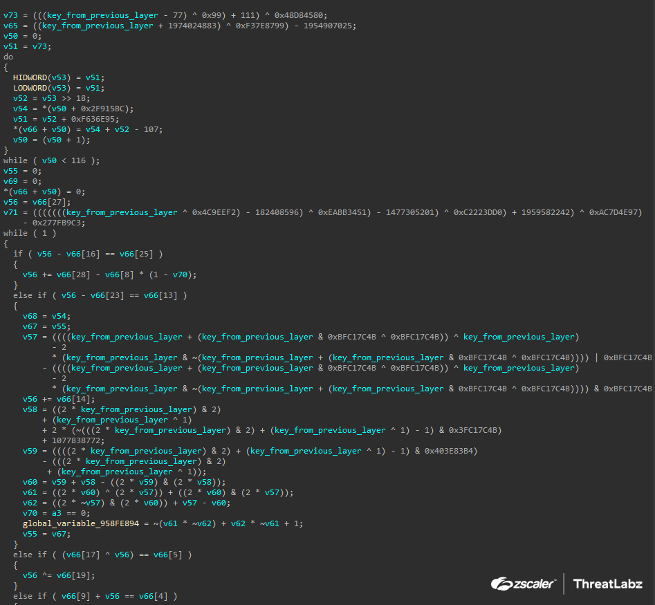 Sixth Layer | Runs a series of anti-analysis techniques and executes a decoy payload if an analysis environment is detected. Otherwise, it decrypts the next layer using the Rabbit stream cipher. |