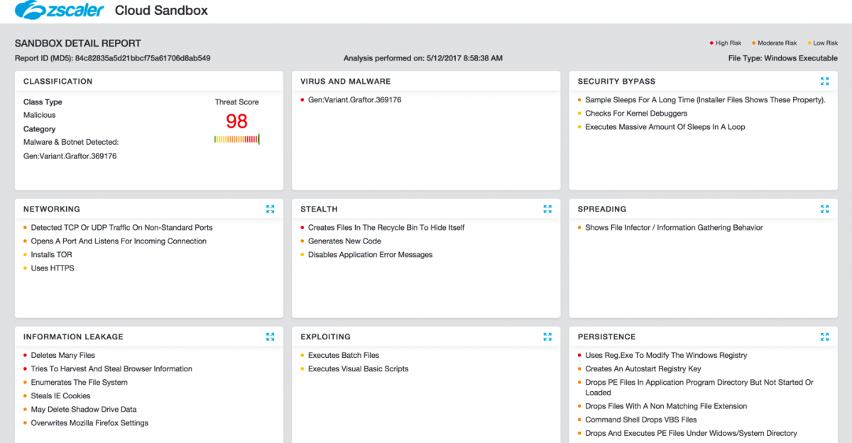 Cloud Sandbox provides the best line of defense in a proactive manner against these evolving ransomware strains. Zscaler Cloud Sandbox successfully detected the payloads from this ransomware strain. Here is a sample Cloud Sandbox report from one such detonation: