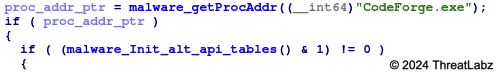 Each Zloader sample expects to be executed with a specific filename. If the filename does not match what the sample expects, it will not execute further. This could evade malware sandboxes that rename sample files. Figure 2 shows an example of a Zloader sample that expects its filename to be CodeForge.exe.