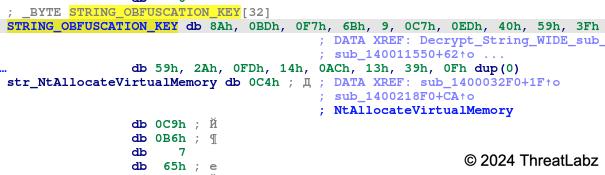The encryption key differs between samples and is also hardcoded in the .rdata section as shown in Figure 3 below.
