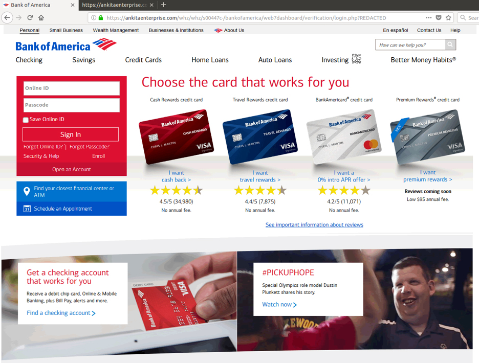 Fig. 6: Faked Bank of America page