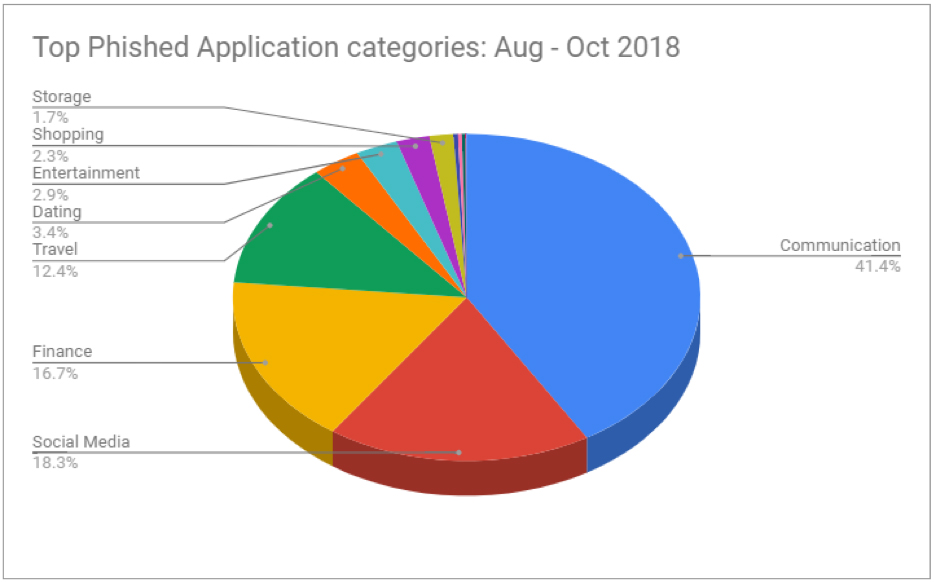 The top five most commonly targeted application categories we saw in the recent phishing campaigns include: