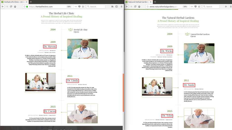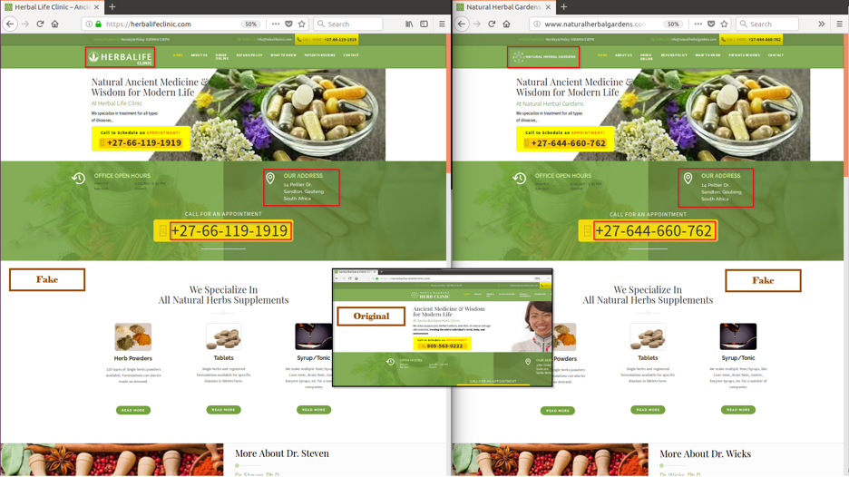 Most of the time, the fakes would include small changes to evade detection, like changing the names of the doctors on the following page but the site is identical otherwise.