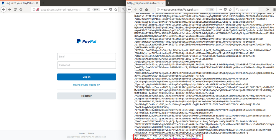 Fig. 10: Encrypted source code for a phishing page