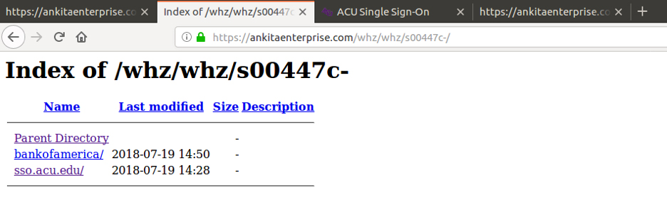 Below is an example of a legitimate site that is compromised and the attacker has hosted multiple phishing sites on the compromised domain. The screenshot shows the open directory found on the compromised web server.