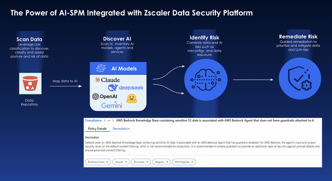 Fig: Zscaler AI-SPM step by step process of mitigating AI and data risks