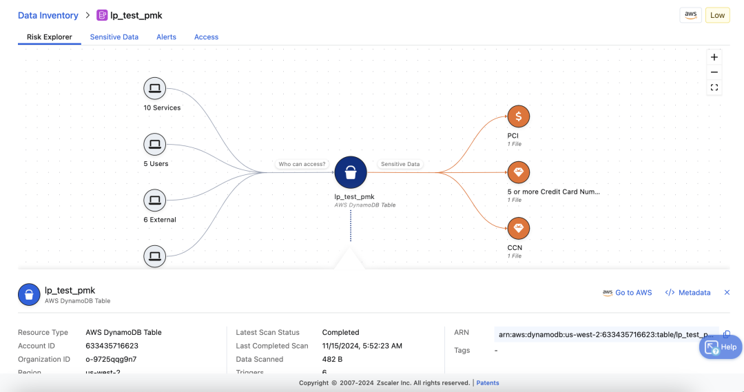 - Get expanded cloud services and platform coverage: Zscaler DSPM now extends its AI-powered data discovery capability to AWS’s top service DynamoDB, a fully managed, serverless, and highly scalable NoSQL database. We also expanded our cloud platform to support Google Cloud, one of the leading cloud providers in the world. With this new expanded coverage, we have the ability to secure structured and unstructured data stores in the top public clouds and services along with SaaS platforms.