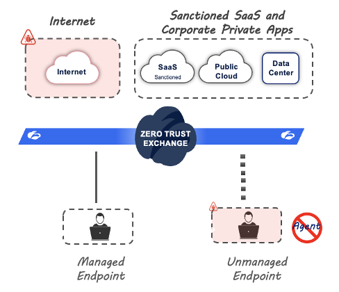Holistically, the Zscaler SSE (Secure Services Edge) platform provides secure access for both managed and unmanaged devices.