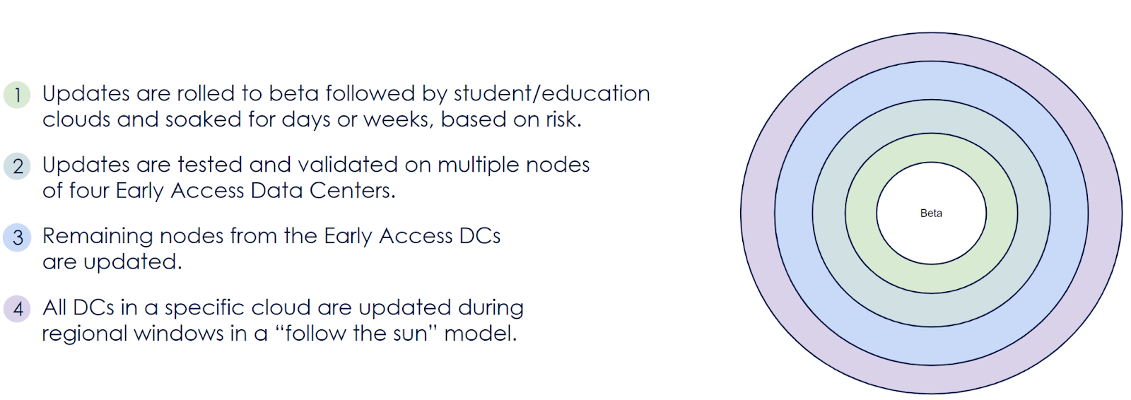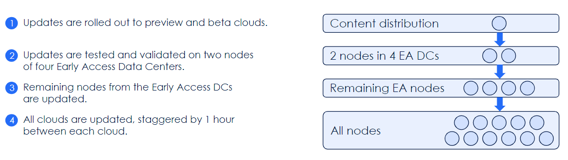 - Stagger rollouts of software and security updates to mitigate risks. Soak test updates with a small group of users to ensure that everything works before rolling out to additional groups.