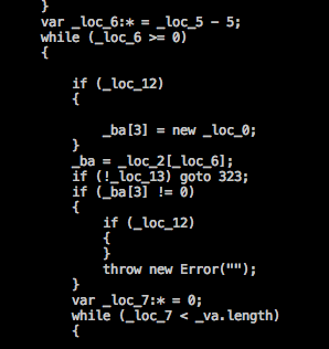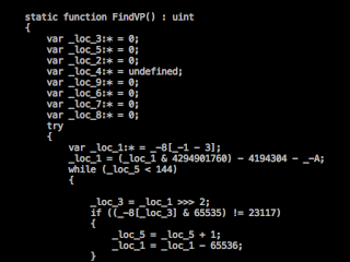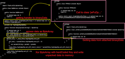When the program execution starts, the ActionScript looks for the input parameters and based on it, sets a variable which is then sent to the main exploitation routine as seen below: