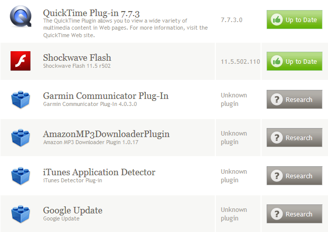 You will notice that four of my plugins are unknown to Mozilla. In this case, the page cannot tell me whether they are up to date or not.