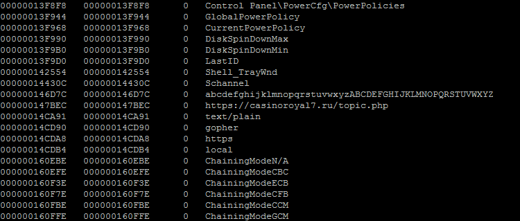 | Viewing the C:\Windows\uhjrajyj.exe in this case will reveal the hardcoded domain used to phone home. |