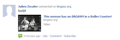 Instead of using a Like button to spread a page, spammers can also use comments. On hxxp://kingsoz.org/, the user is asked to enter a captcha to access the video. The result is actually entered into a Facebook comment box (you can see the "comment" button).