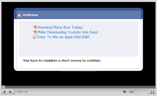 Getting the spam page hosted in a victim's Facebook profile is only the first step for a scammer. Ultimately, they want to make a few bucks from each visitor. A common technique used involves asking visitors to fill out a survey, install software, or to click on advertising to verify that they are in fact a human and not an automated script. The spammers get paid for each action.