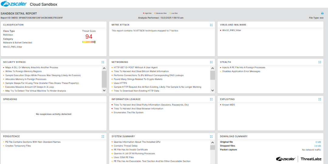 Figure 7: Zscaler Cloud Sandbox report for Vidar.