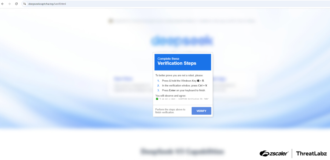 Figure 4: Fake CAPTCHA lure in DeepSeek-themed malware scam.
