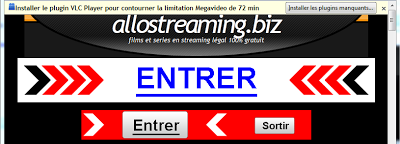 On allostreaming.biz (French language), the fake warning is for a "missing" VLC plugin. You can tell that the warning is part of the page, and not part of the browser, because the scroll bar goes to the top of the warning, whereas the real warning is above the scroll bar (see the image above).