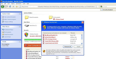 We continue to see numerous infected sites, which are redirecting users to fake security software campaigns. The pages display animated fake security warnings to users in order to scare them and convince them to download and install a binary, which is generally packaged as fake antivirus software. The victim will be infected with a downloader Trojan that will then download additional malware. Below are a few screenshots of animations typically used in the attacks: