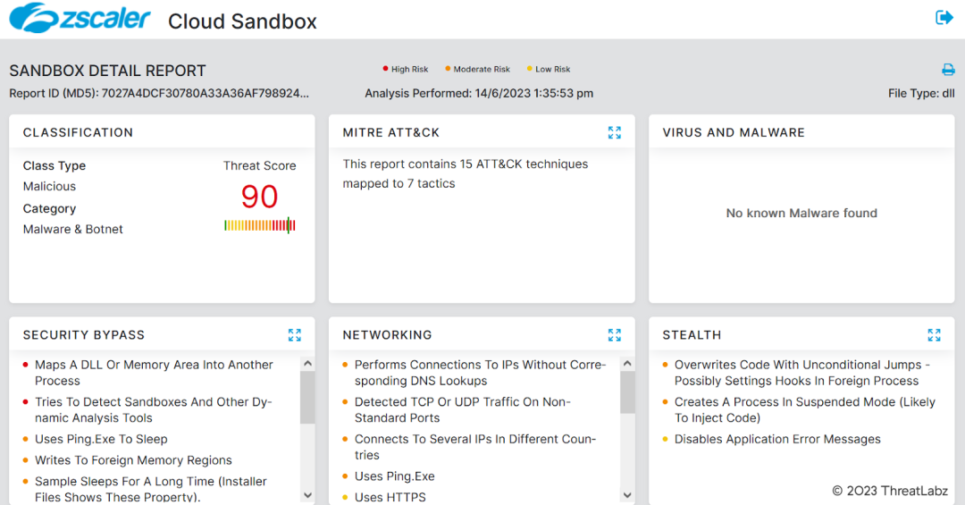 With the use of Zscaler Sandbox, we shed light on the threat scores and specific MITRE ATT&CK techniques triggered by Qakbot during our investigation. Armed with this knowledge, cybersecurity professionals can better equip themselves to counter this persistent malware and protect their networks from its malicious campaigns.