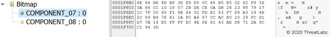 Additionally, the unpacking of the Qakbot malware is relatively straightforward, utilizing the VirtualAlloc() API to allocate memory space and execute itself. The unpacked payload reveals two different components within the Bitmap section: COMPONENT_07 and COMPONENT_08. COMPONENT_07 contains the encrypted campaign ID, while COMPONENT_08 contains the encrypted Qakbot command-and-control server (C2) configurations.