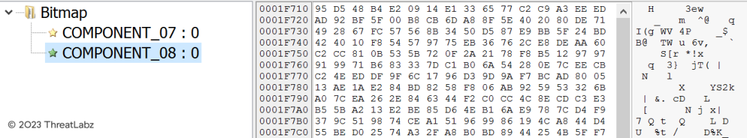 The screenshot in Figure 12 shows the encrypted content of Component_08, which appears to hold the encrypted QakBot command-and-control (C2) server configuration information. Decrypting this component may reveal critical information about the communication channels and C2 infrastructure utilized by the QakBot malware and provide essential insights into the threat actor's operations.