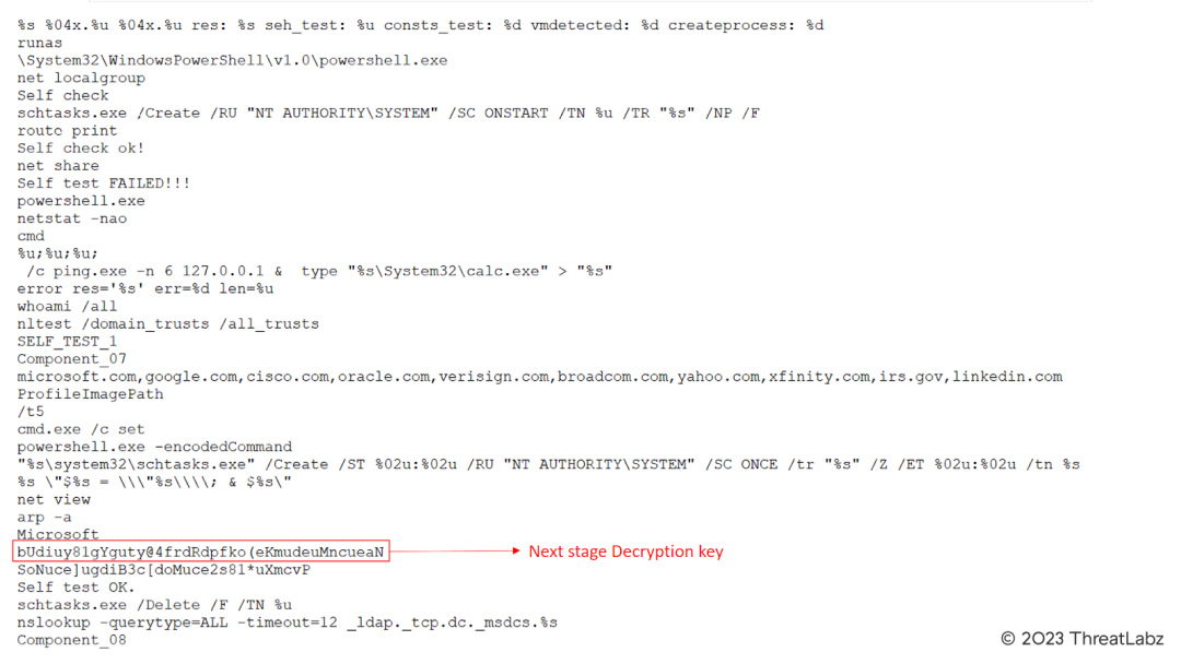 These decrypted strings contain valuable information regarding Qakbot's functionalities and internal operations. The next stage decryption key is a critical component that leads to the unraveling of additional layers of encryption and provides insights into Qakbot's intricate behavior.