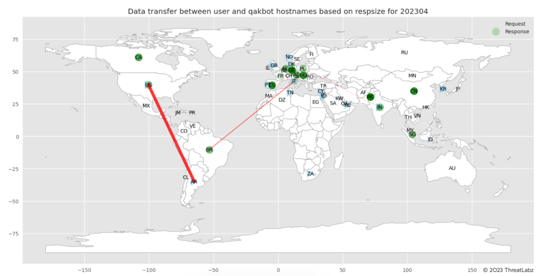 3. Global Reach and C2 Infrastructure: The analysis reveals Qakbot's wide geographic distribution, with C2 servers highly active in various countries. This highlights the malware's global reach and capability to target organizations worldwide.