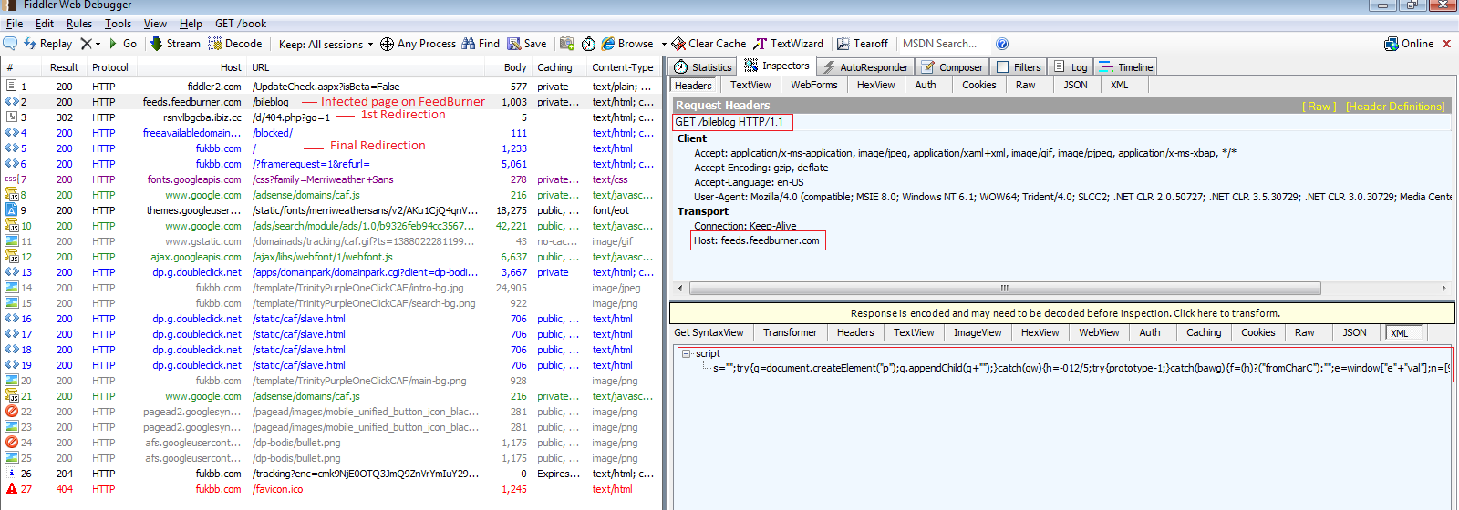 Currently, ‘hxxp://fukbb.com’ is not serving any malicious code but the reputation of this site is found to be suspicious (Refer the VT link below). The page could however be revived at some point in the future. ThreatLabZ informed FeedBurner about this infection on 12/26/2013.