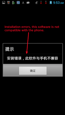 As soon as victim tries to start the app, it shows an explicit error stating "Installation errors, this software is not compatible with the phone" and the icon then disappears from the device screen.