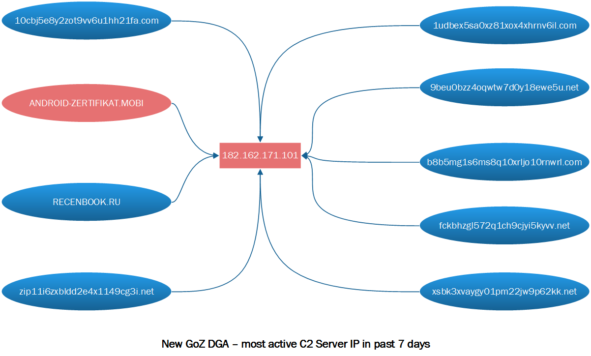 The previous Gameover Zeus variant used a P2P command and control protocol in addition to a failover domain generation algorithm (DGA), to establish connection with a C2 server. However, this newer variant does not feature a P2P command and control protocol, instead it is falling back to the old DGA with fast flux tactics to hide the C2 servers. This in our opinion is a step backward as P2P was a more resilient feature.