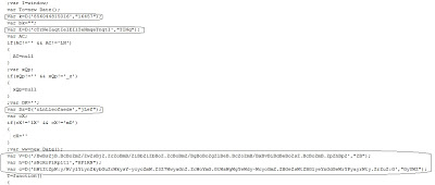 As you can see, the code still appears heavily obfuscated with numerous variables defined. You will also notice some JavaScript functions like “.substr”, “document.body.appendChild” which are commonly found in malicious code. Many of the variables defined receive a return value from function “D()” such as: