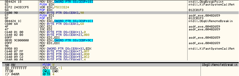 Figure 9: The patched DbgUIRemoteBreakin API.