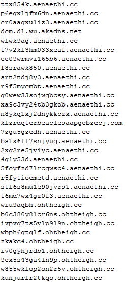 Across all 64 distinct samples we've collected of this threat thus far, there have been 469 distinct IPs where there has been a call to a DGA location. A small sample of those illustrate the connection between the phone home data collected via network logs and the BA of the Caphaw samples.