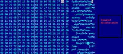 The Dridex sample is embedded in the resource section of the packer. After unpacking, it drops a Borland Delphi executable file. The following is the snapshot of encrypted resource section: