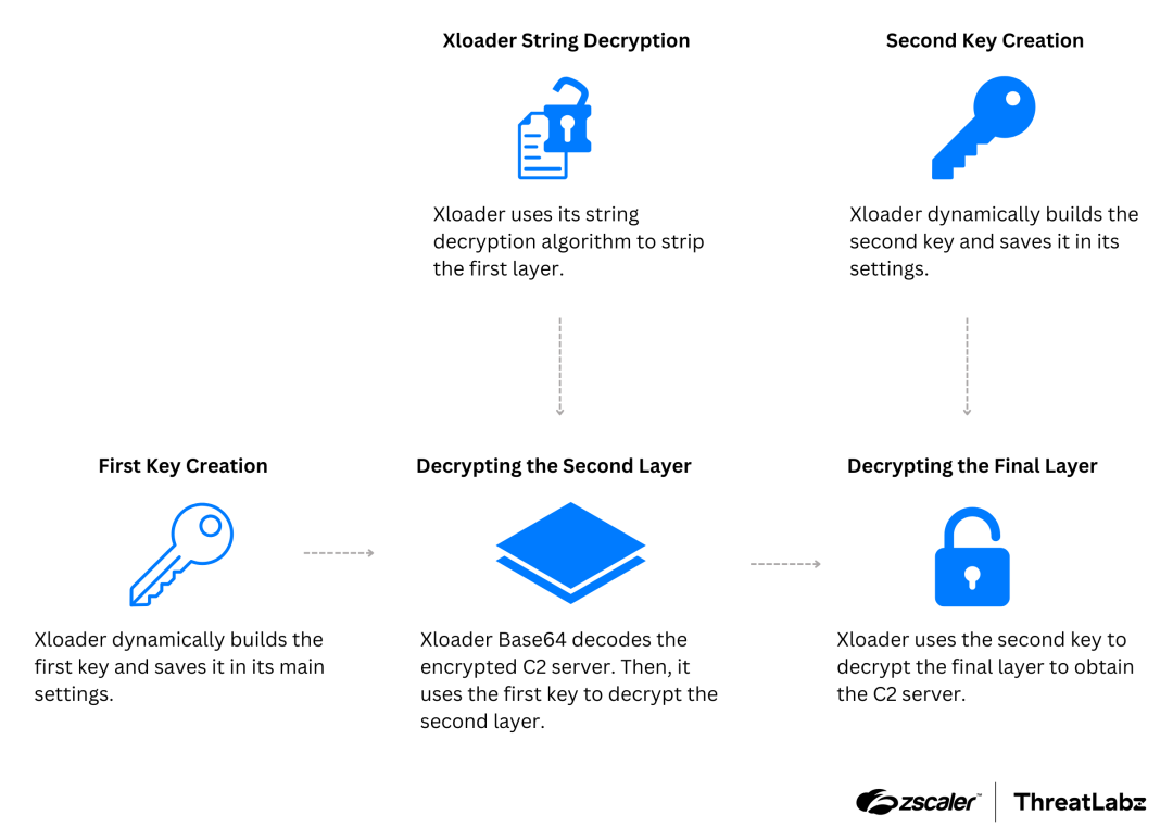 The figure below shows a high-level description of the process that Xloader uses to decrypt the decoy C2s.