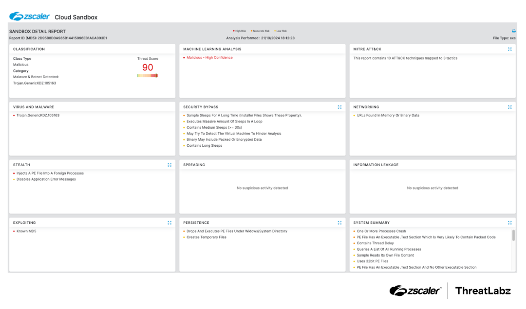 Figure 2: Zscaler Cloud Sandbox report for Xloader.