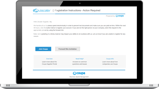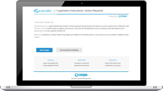 If this is your first time registering, you will receive an email from Zscaler via the Coupa Supplier Portal.