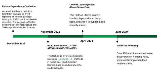 A number of vulnerabilities have been exploited over the last 3 years. ML exploits are going undetected in common ML repositories like hugging face for months before being picked up by the platforms. The dwell time between a malicious model being published, scanned and detected currently is running into months.