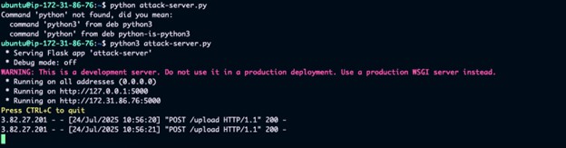 Uploads them to attacker's server at x.x.x.100:5000