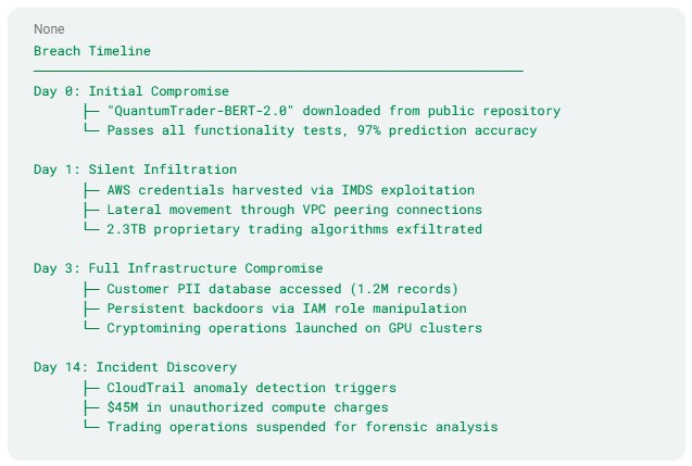 - Catastrophic impact — Single compromised model can provide complete infrastructure access