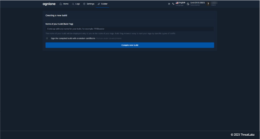 Below, you can see the Builder tab showing builder information. With this tab, cyber criminals can build custom variants of Agniane Stealer.