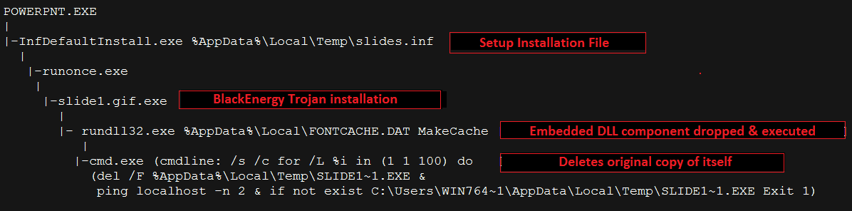 A vulnerability in Windows Object Linking and Embedding (OLE) package manager could allow an attacker to perform remote code execution on the target system. The attacker exploits this vulnerability via a specially crafted Microsoft Office file with embedded OLE files from a remote location. The remote files in the SandWorm exploit hilighted by iSIGHT Partners include a malicious executable from a known malware family, namely the BlackEnergy Trojan. BlackEnergy malware family first appeared in year 2007 and has been involved in multiple targeted attack campaigns this year.